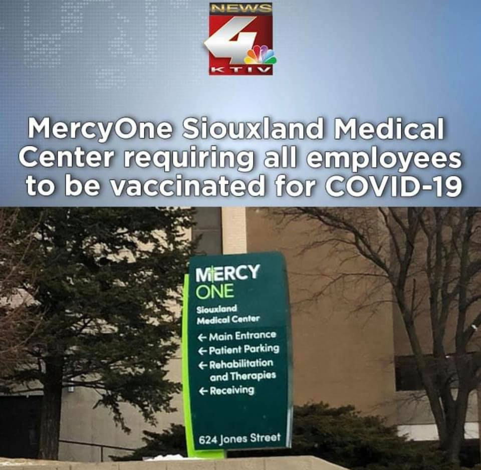 MercyOne Siouxland Medical Center requiring all employees to be vaccinated for covid-19